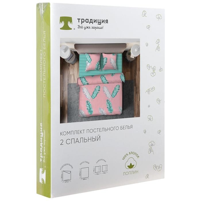 Постельное бельё евро «Pastel Перья», размер 200×217 см, 220×240 см, 70×70 см, 2 шт
