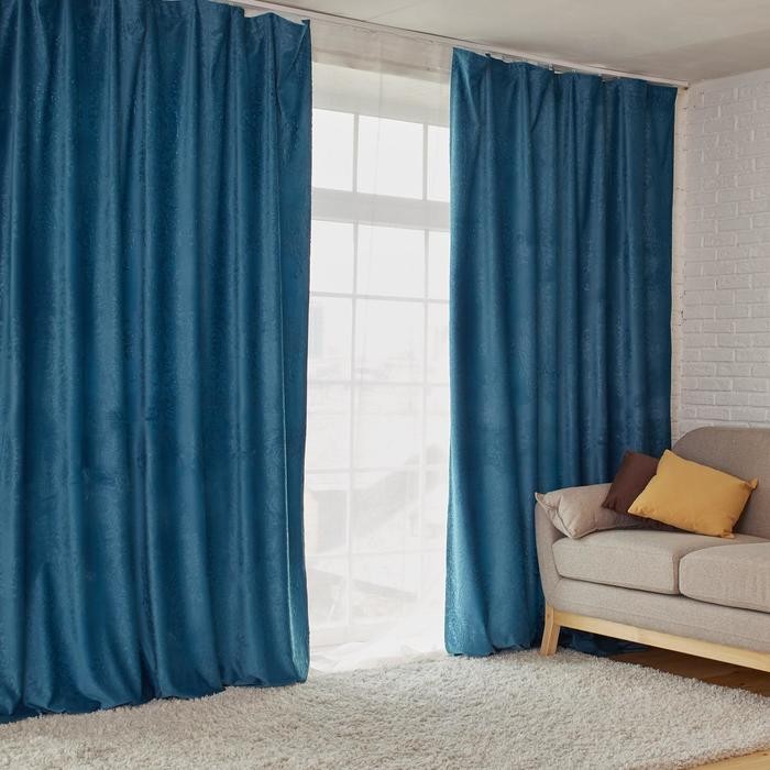 Штора портьерная «Этель» 230*270 см Валенсия Лазурный ,100% п/э