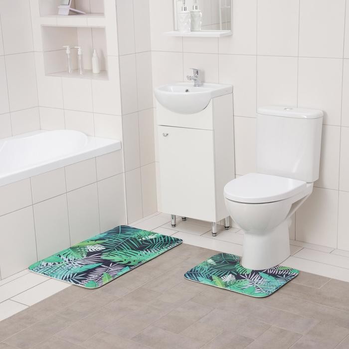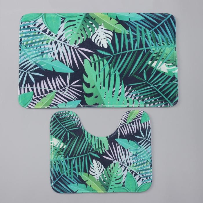 Набор ковриков для ванны и туалета Доляна «Тропики», 2 шт: 40×50, 50×80 см