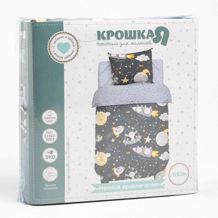 Постельное бельё детское Крошка Я «Ночные приключения», 112×147 см, 60×120+20 см, 40×60 см