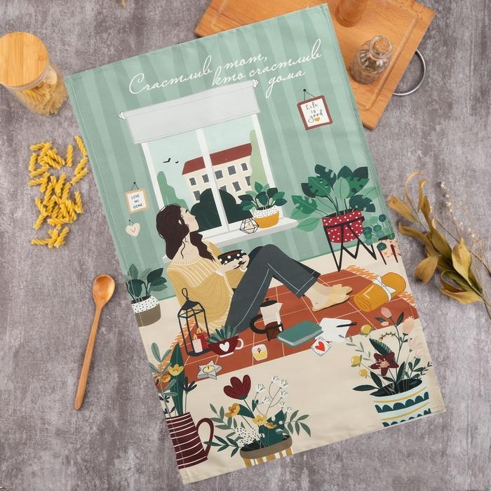 Полотенце «Этель» Счастье быть дома 40×73 см, 100% хл, саржа 190 гр/м2