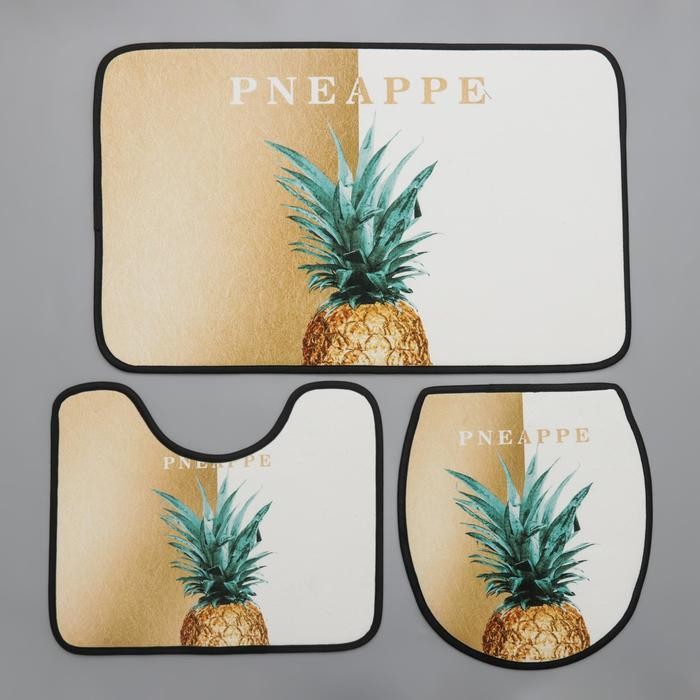 Набор ковриков для ванны и туалета Доляна «Ананас», 3 шт: 50×80, 45×50, 38×43 см