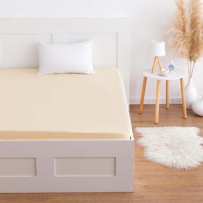 Простыня на резинке Этель 140*200*25 см, цв.желтый, 100% хлопок, мако-сатин, 128 г/м²