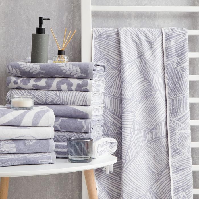 Полотенце махровое Этель Foglie серый, 70×130 см, 100% хл, велюр, 420 гр/м2
