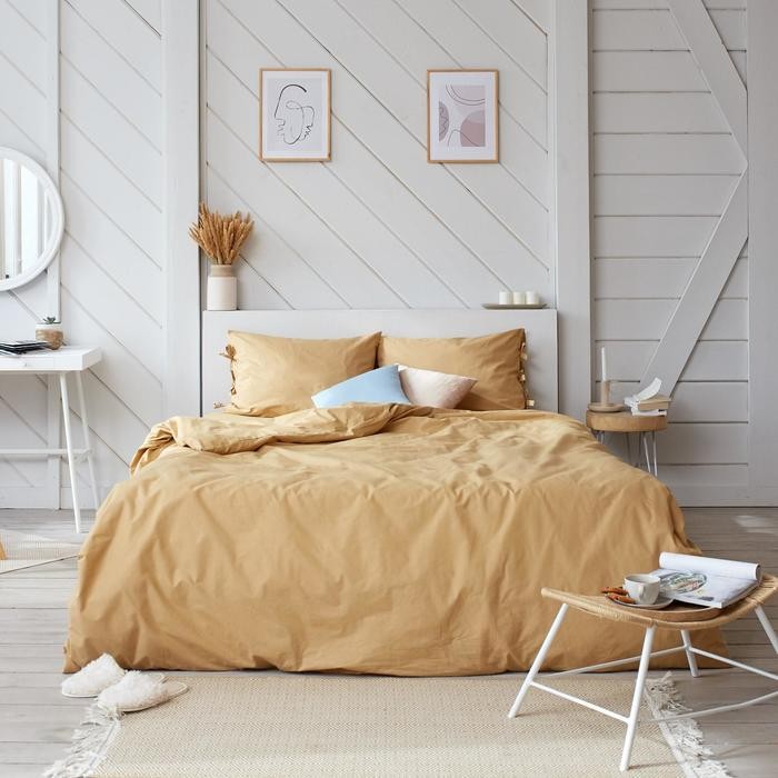Комплект постельного белья евро «Пралине» отлично подойдёт для спальни в стиле: минимализм и современный.