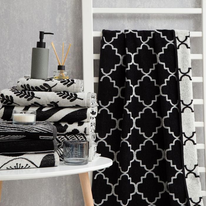 Полотенце махровое Этель Ornament чёрный, 70×130 см, 100% хл, велюр, 420 гр/м2