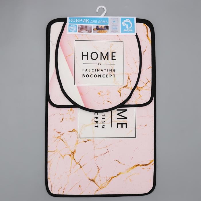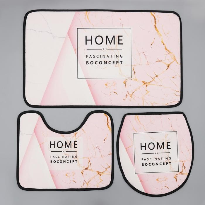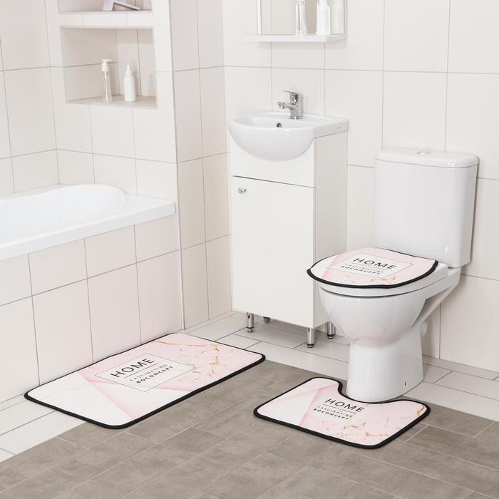 Набор ковриков для ванны и туалета Доляна Home, 3 шт: 50×80, 45×50, 38×43 см, цвет розовый