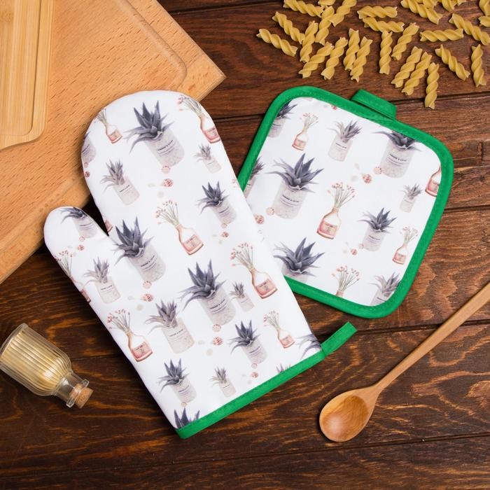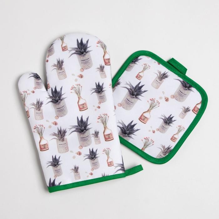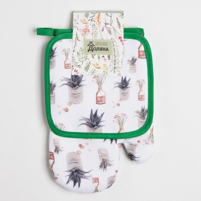 Кухонный набор Доляна «Цветы», прихватка 17*17 см, рукавица 26*16 см,100% п/э