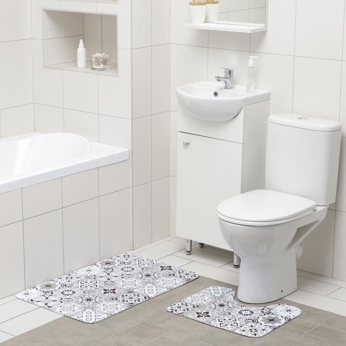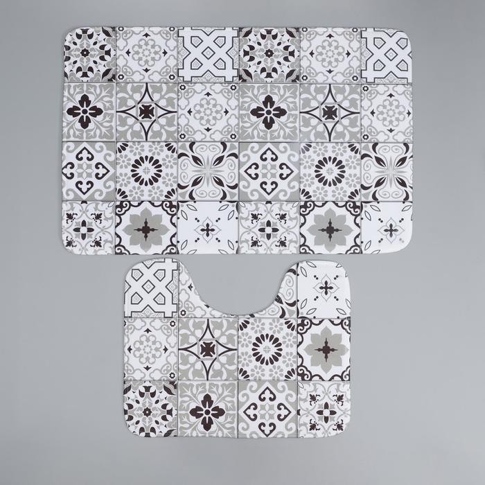 Набор ковриков для ванны и туалета Доляна «Плитка», 2 шт: 50×80, 40×50 см, цвет коричневый