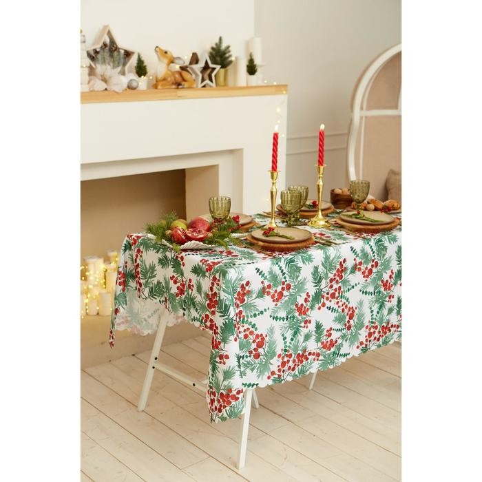 Скатерть Доляна «Новый год: Сhristmas berries» 145*180 +/- 2 см, 100% п/э
