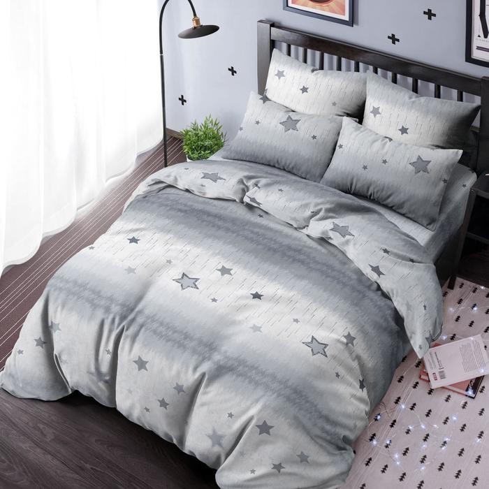 Постельное бельё Евро Ночь Нежна «Звёздочки серые» 200х220см, 200х220см, 70х70см-2шт