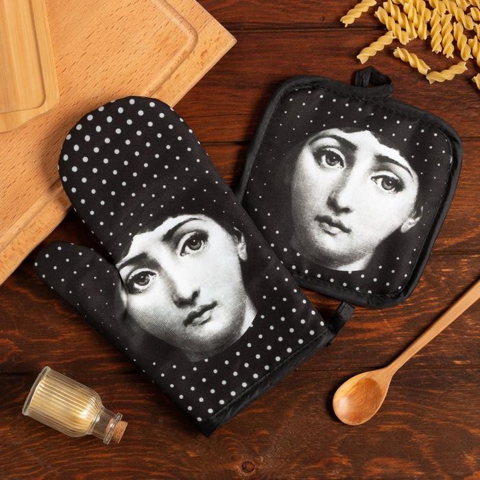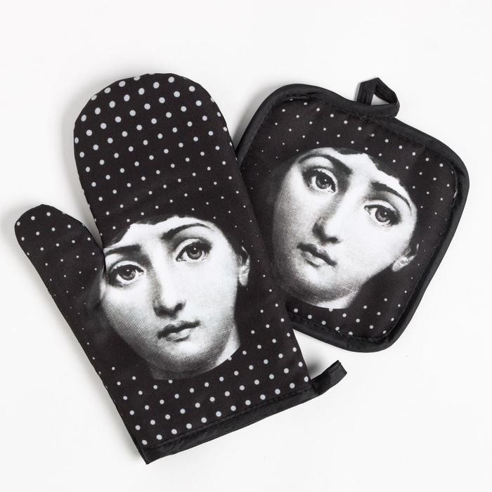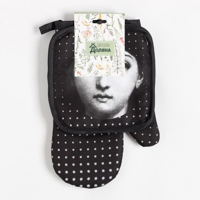 Кухонный набор Доляна «Портрет», прихватка 17*17 см, рукавица 26*16 см,100% п/э