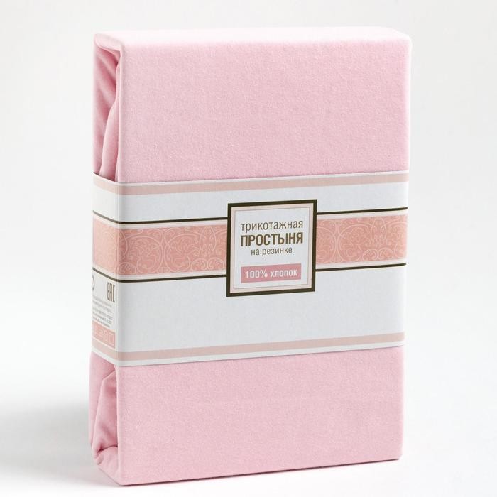 Трикотажная простынь на резинке 160х200х25см, розовый кулирка