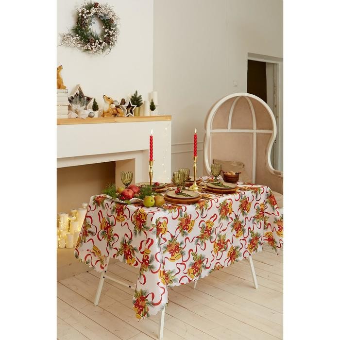 Скатерть Доляна «Новый год: Новогодние колокольчики» 110*145 +/- 2 см, 100% п/э