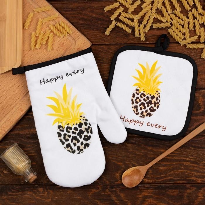 Кухонный набор Доляна Happy every прихватка 17*17 см, варежка-прихватка 26*16 см, 100% п/э