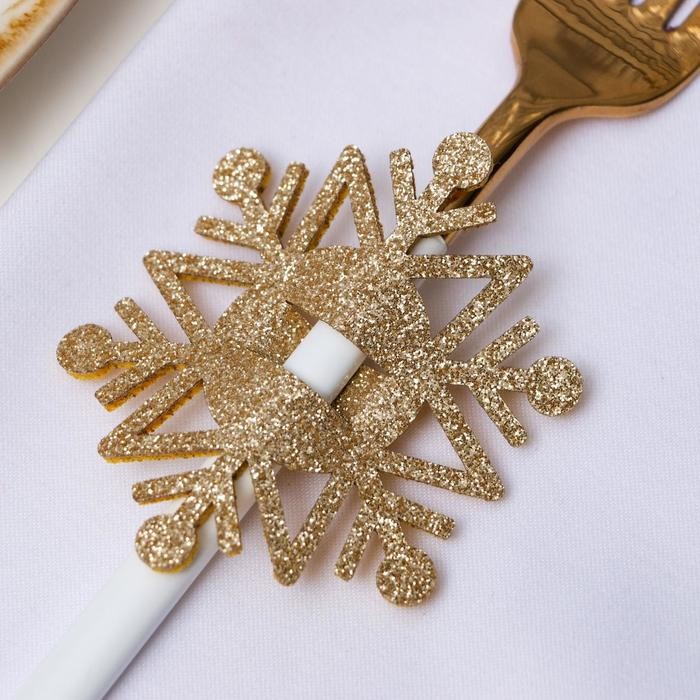 Набор для декора столовых предметов «Снежинка», 4 шт, цв. золото 6,5×7,5 см, 100% п/э, фетр 626 098