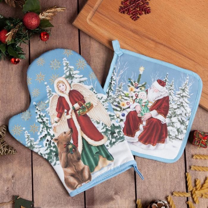 Набор кухонный «Новогоднее чудо» варежка-прихватка 20х28см, прихватка 19х19см,100%хл