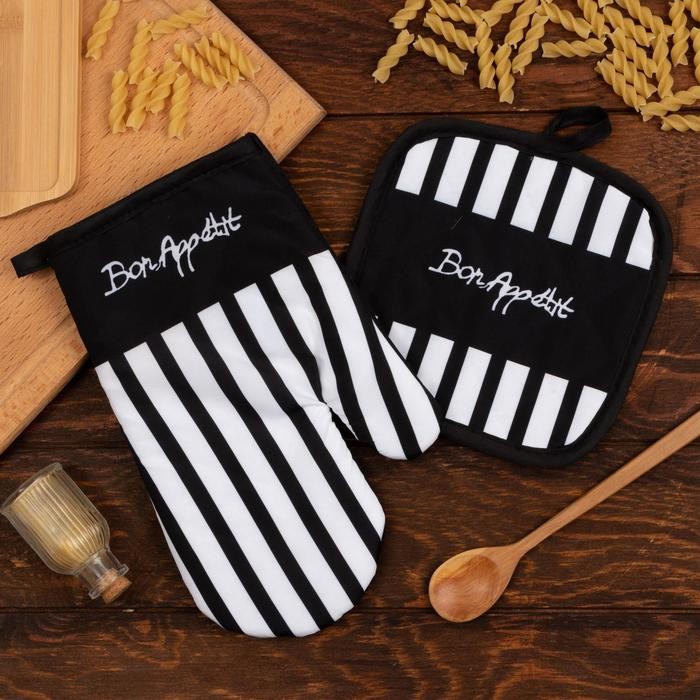 Кухонный набор Доляна Bon appetit прихватка 17*17 см, варежка-прихватка 26*16 см, 100% п/э