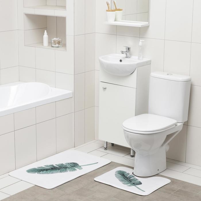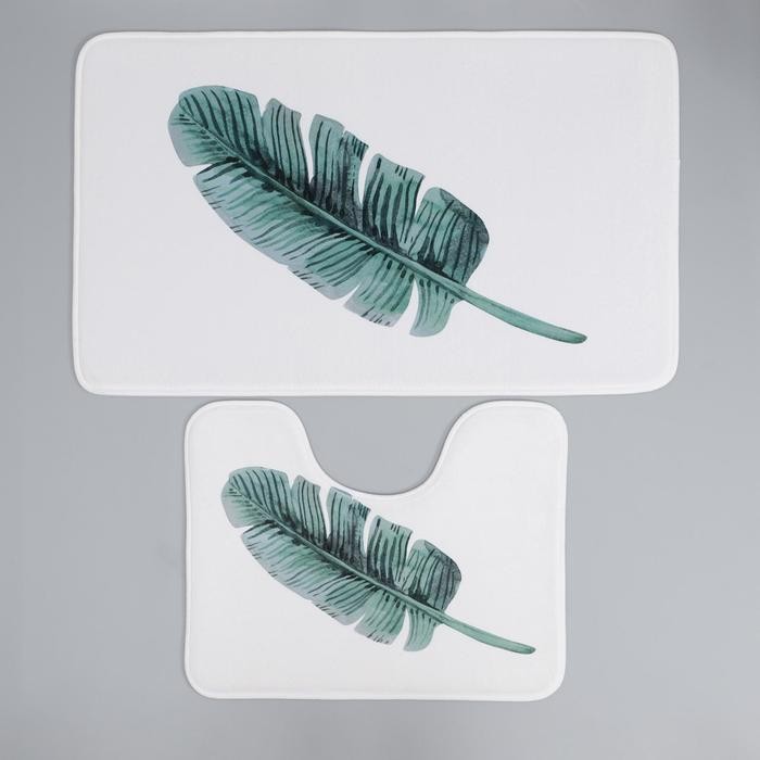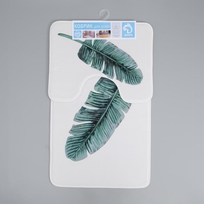 Набор ковриков для ванны и туалета Доляна «Тропический лист», 2 шт: 50×80, 40×50 см