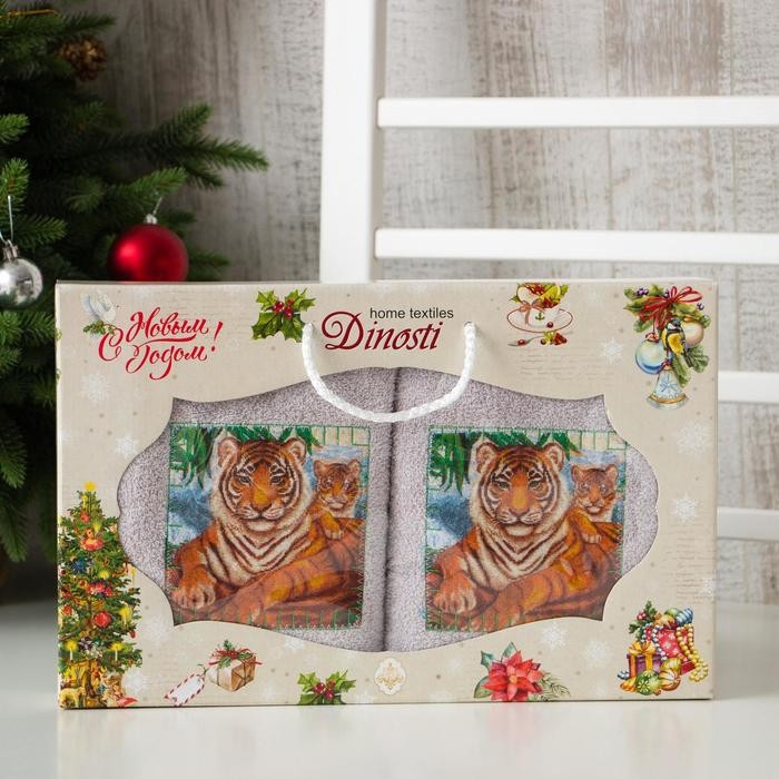 Новогодние полотенца (подарочный набор 2 шт.) Королева джунглей 40х70см, бежевый, хлопок 100%, 400г/м2
