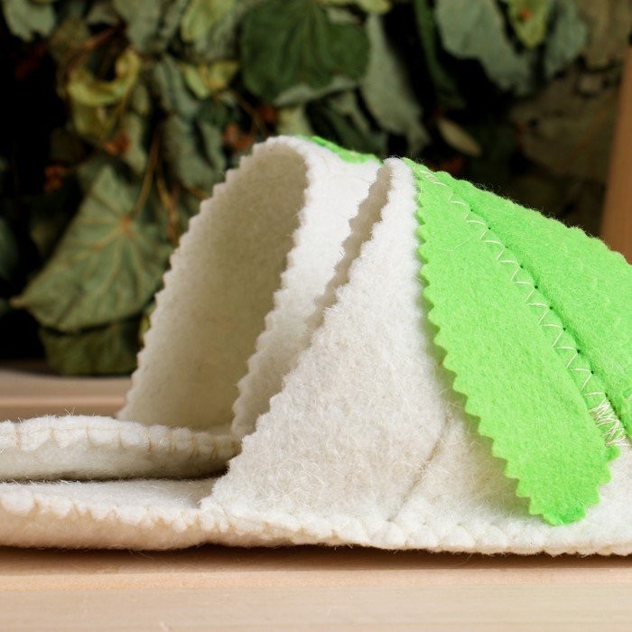 Войлочные тапочки с округлым закрытым носком обеспечивают комфорт и безопасность во время посещения бани и сауны. Натуральный войлок отлично впитывает излишки влаги, поддерживает оптимальную температуру, расслабляет и массирует стопу. Изделия выполняют также и гигиеническую функцию, что немаловажно при посещении общественных заведений.