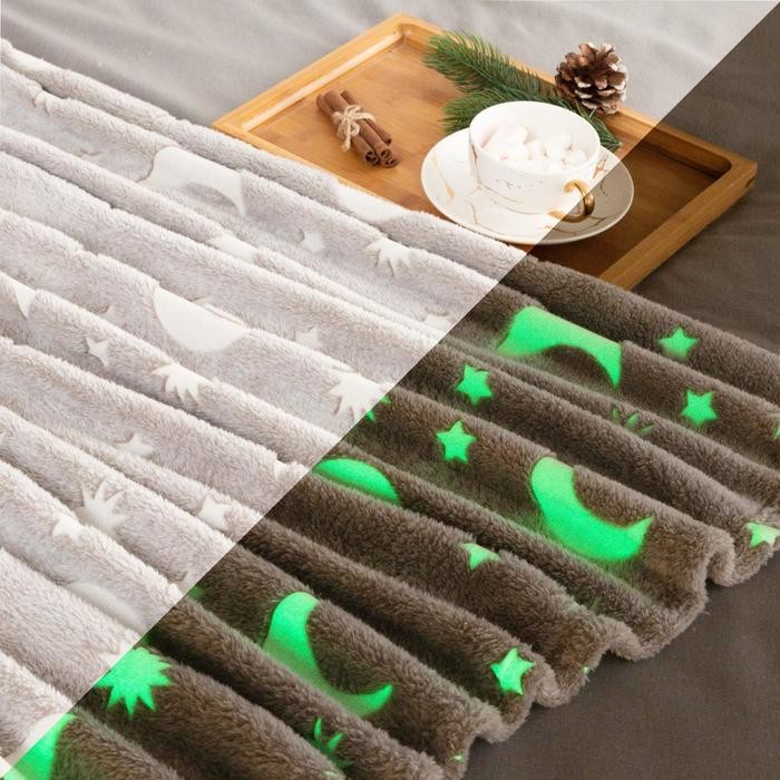 Яркость и продолжительность свечения пледа зависит от того, насколько долго он находится на свету. Даже после машинной стирки плед не потеряет свои свойства.