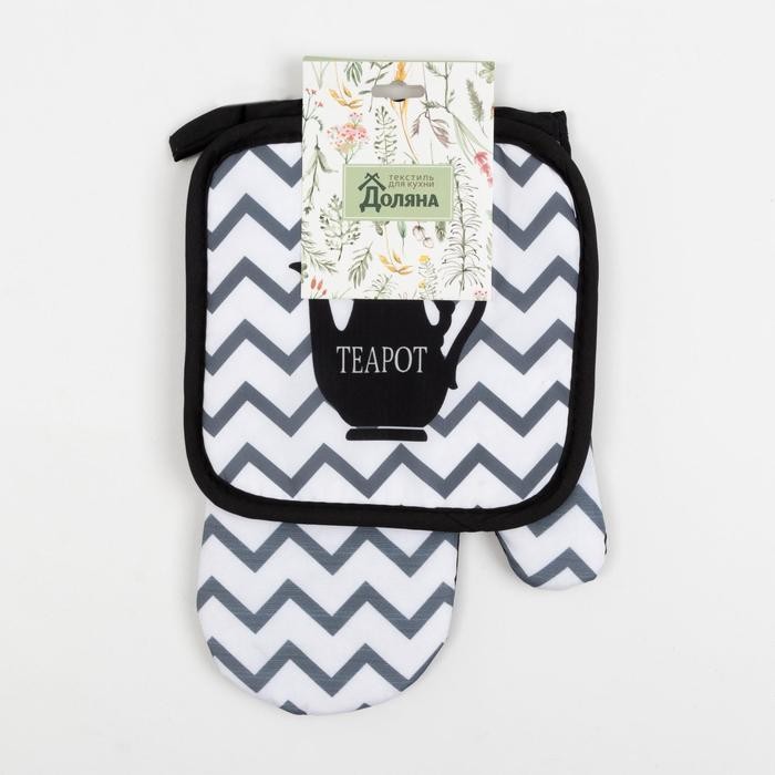 Кухонный набор Доляна Teapot, прихватка 17*17 см, рукавица 26*16 см,100% п/э