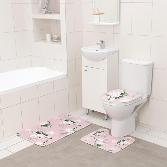 Набор ковриков для ванны и туалета Доляна «Фло», 3 шт: 50×80 см, 50×40 см, 38×43 см