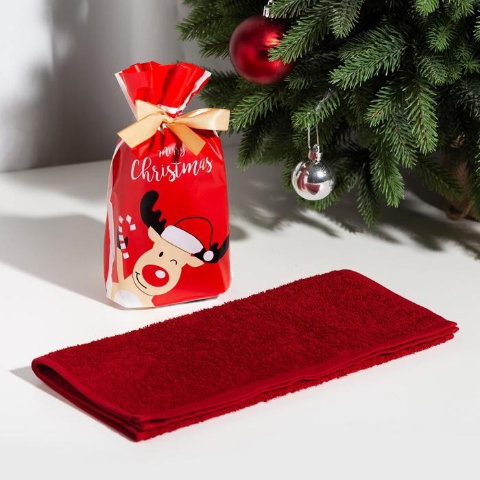 Полотенце подарочное Экономь и Я «Весёлый олень» 30×60 см, цвет бордовый, 100% хл, 320 г/м2