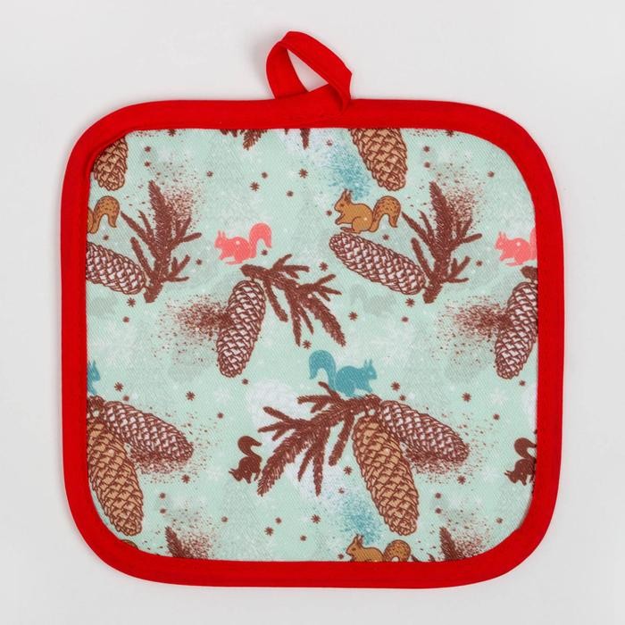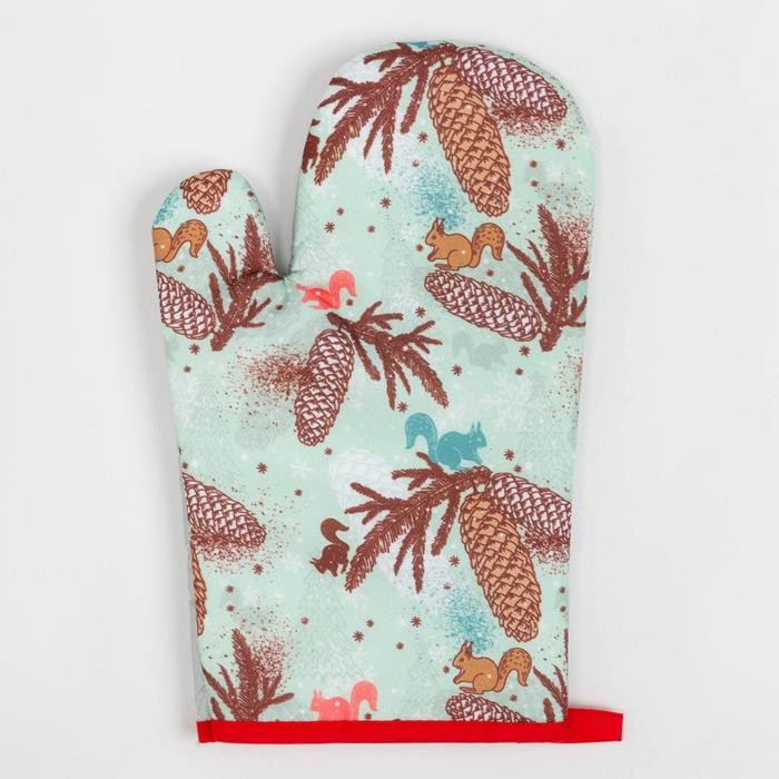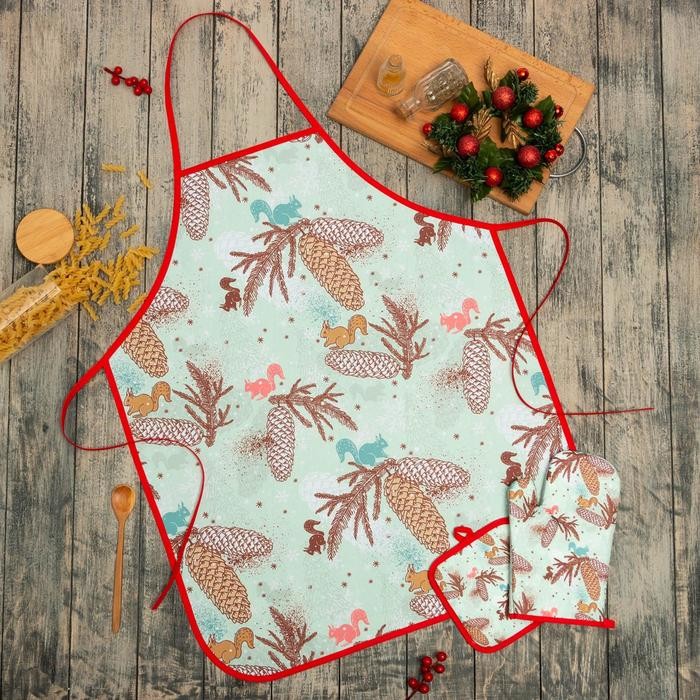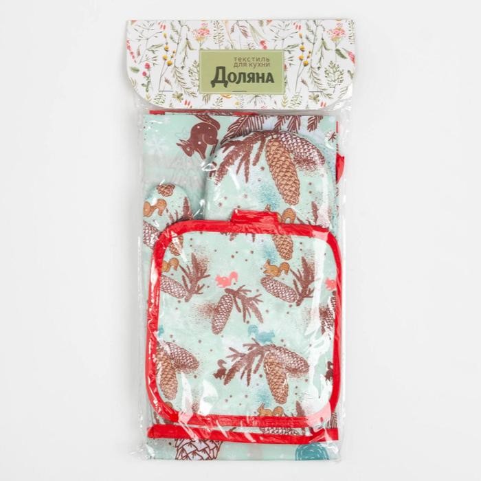 Кухонный новогодний набор Доляна«Шишки»,прихватка 17*17см,варежка 26*16см, фартук 60*80 см 100% п/э