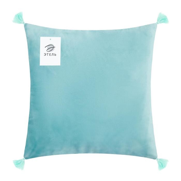Наволочка на подушку с кисточками Этель цвет голубой, 45×45 см, 100% п/э, велюр
