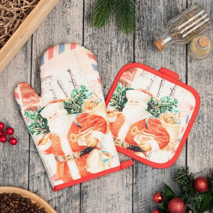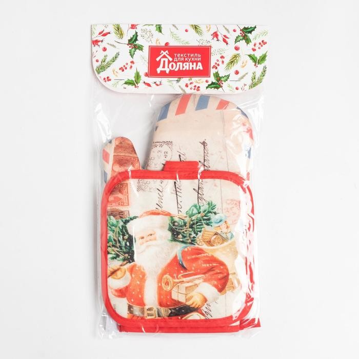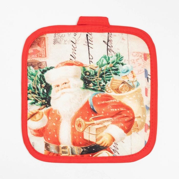 Кухонный новогодний набор Доляна «Новый Год», прихватка17х17см, варежка-прихватка 26×16 см,100% п/э
