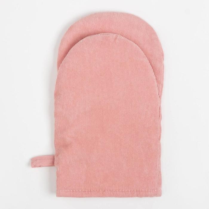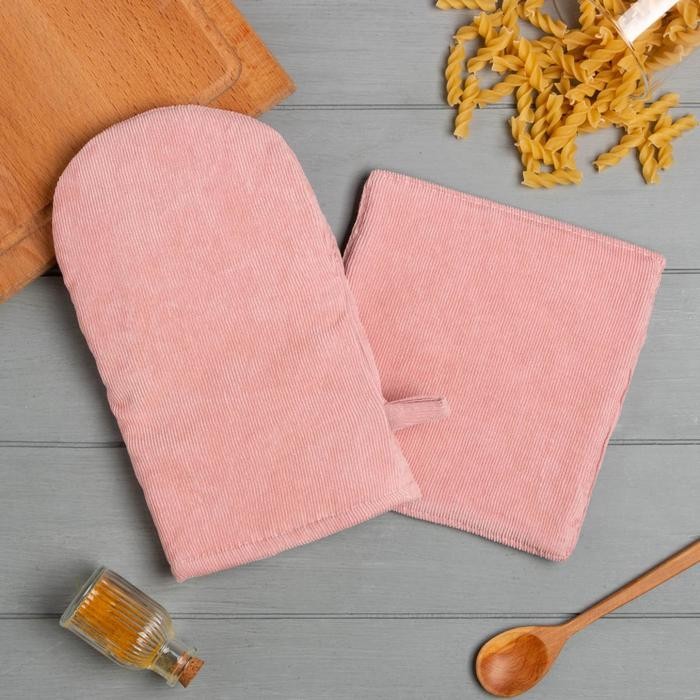 Кухонный набор 2 предмета Этель «Классика» цвет розовый, прихватка 19*19 см, варежка 27*14 см