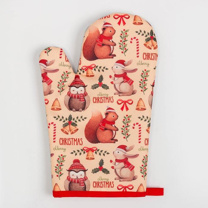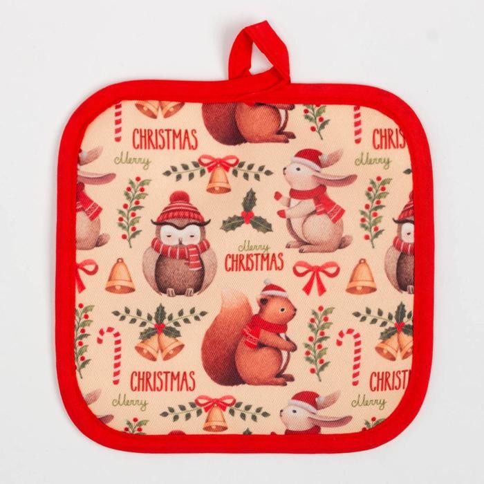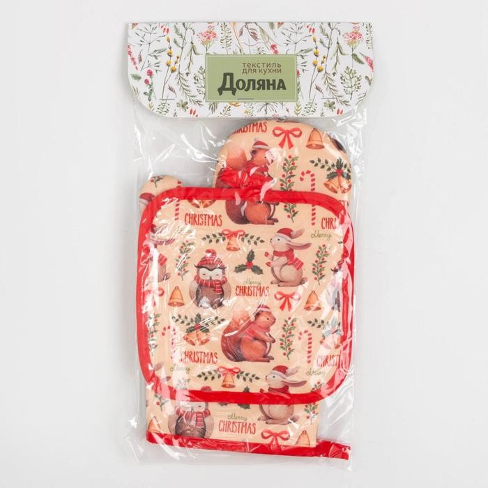 Кухонный новогодний набор Доляна «Christmas», прихватка 17*17 см, варежка 26*16 см,100% п/э