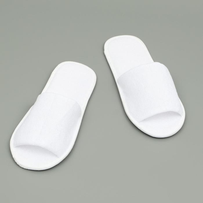 Одноразовые тапочки, Махровые-Медиум-лайт, синтетика, белые, открытый мыс, 42 р.