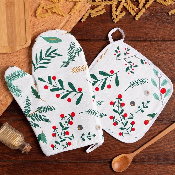 Набор Leaves варежка-прихватка 20х28см, прихватка 19х19см, 100% х/л, ватин 250г/м2