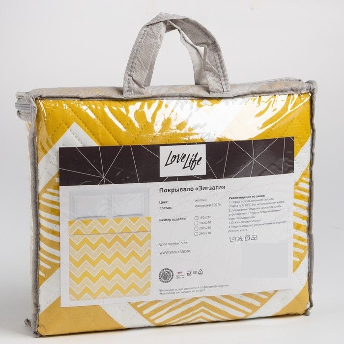 Покрывало LoveLife 2 сп «Зигзаги» цв. желтый, 180*210±5см, микрофайбер, 100% п/э