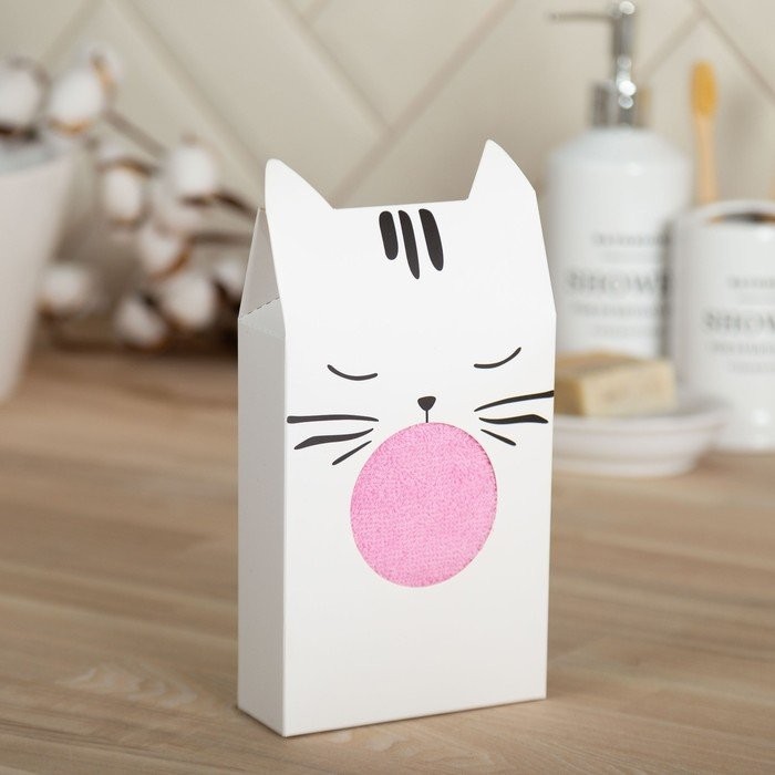 Полотенце подарочное Экономь и Я «Котик» 30*60 см, розовый, 100% хл, 320 г/м2