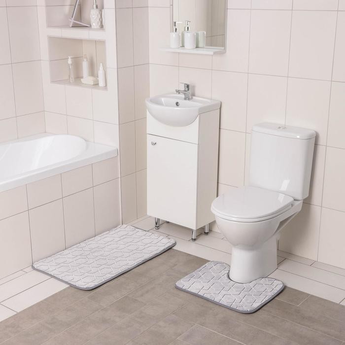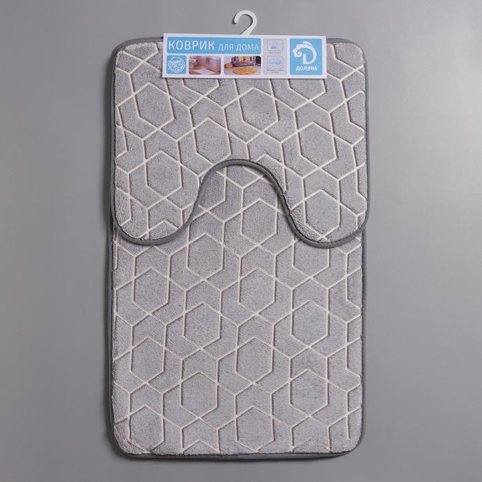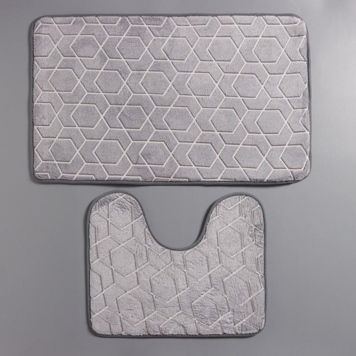Набор ковриков для ванной и туалета Доляна «Светящиеся фигуры», 2 шт: 50×80, 50×40 см, цвет серый