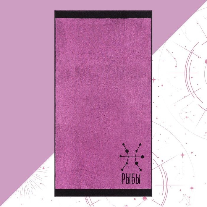Полотенце махровое Этель «Знаки зодиака: Рыбы» розовый, 67×130 см, 420 гр/м2, 100% хлопок