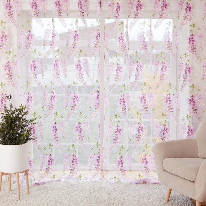 Тюль Этель «Виноградная лоза» (лиловый) б/ утяжелителя, ширина 140 см, высота 250 см
