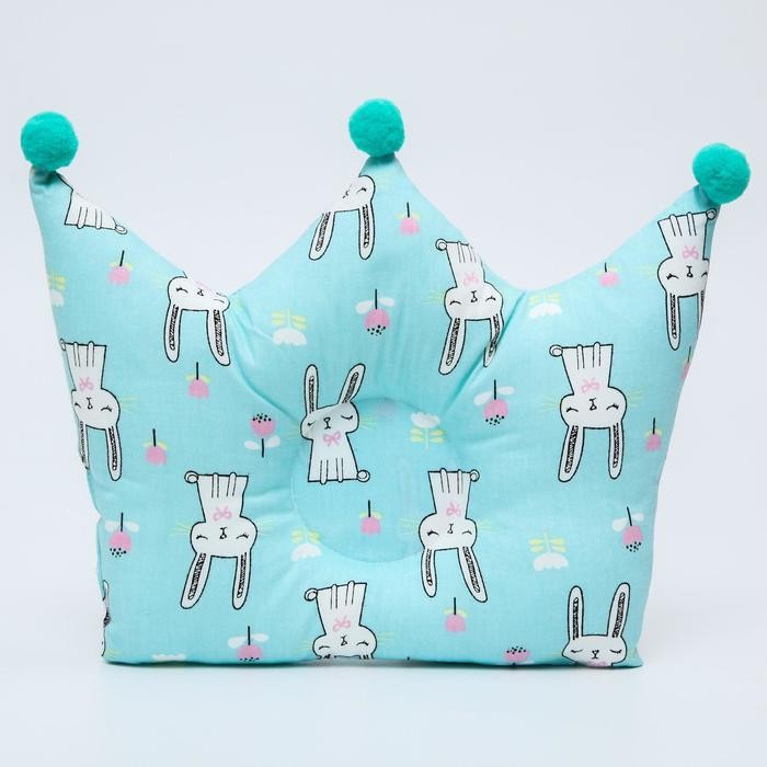 Подушка детская ортопедическая «Корона», зайки на бирюзовом