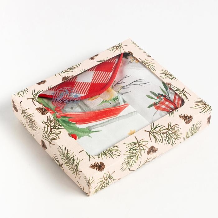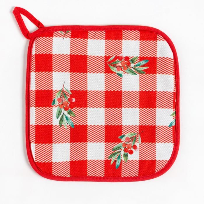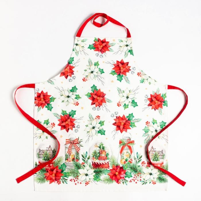 Набор подарочный «Этель» Christmas red flowers, фартук, полотенце, прихватка