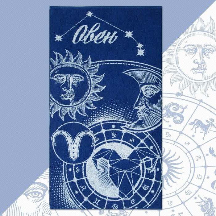 Полотенце махровое Этель «Знаки зодиака: Овен» синий, 67×130 см, 100% хлопок, 420гр/м2
