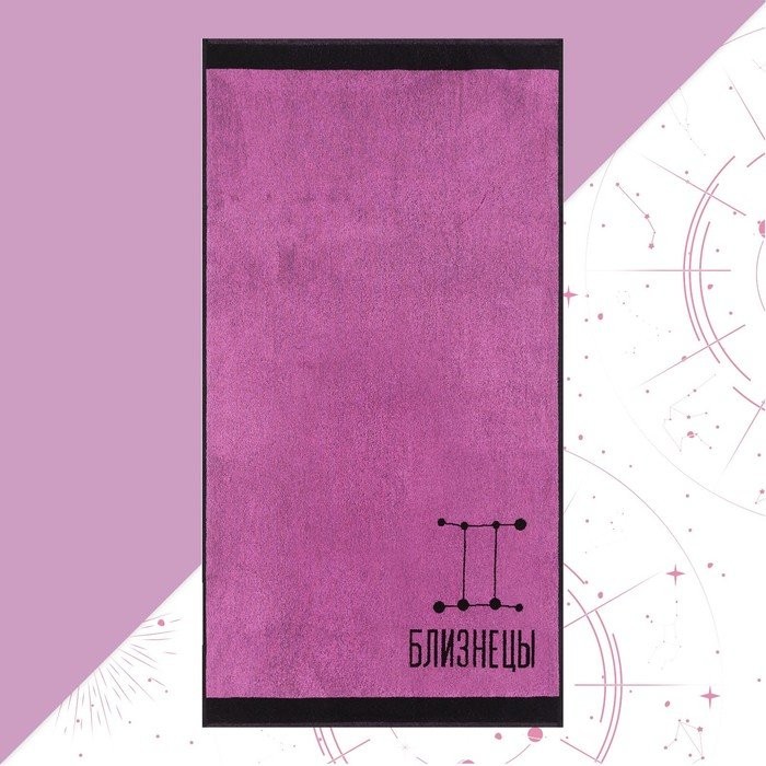 Полотенце махровое Этель «Знаки зодиака: Близнецы» розовый, 67×130 см, 420 гр/м2, 100% хлопок