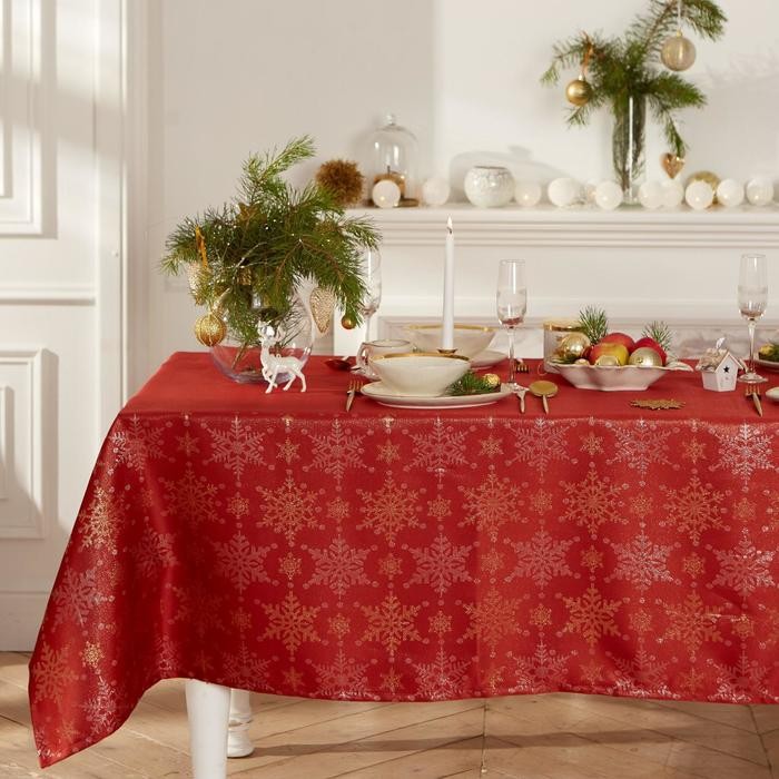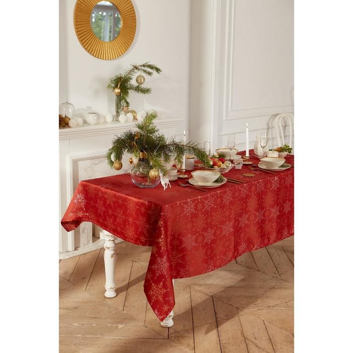 Скатерть Этель «Снежинки» цв.красный, 142*110 +/-3 см, 115 ±10 гр,100% п/э