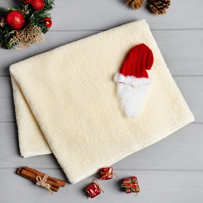 Подарочное полотенце с игрушкой Этель «Дед Мороз» 50*90 см, цв.молочный, 100% хл, 320г/м2