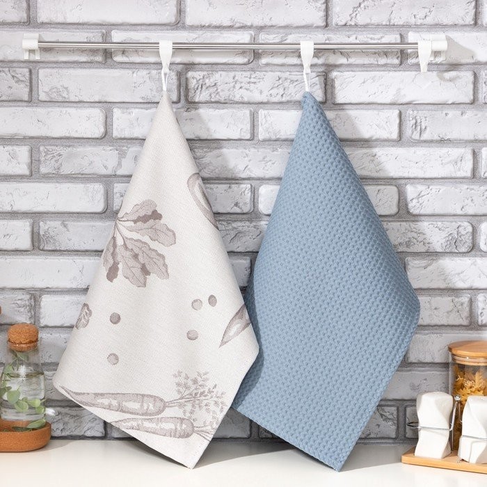 Набор полотенец «Этель» Обед 40×60 см — 2 шт., цвет серый, 100% хлопок