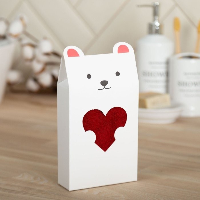 Полотенце подарочное Экономь и Я «Мишка» 30*60 см, бордовый, 100% хл, 320 г/м2
