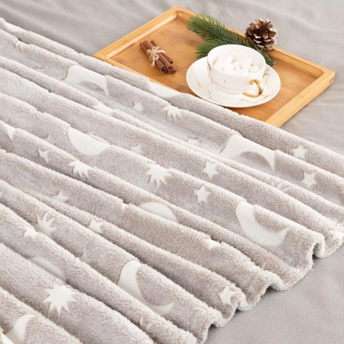 Плед светящийся в темноте Этель «Луна» 200*220 см,100% п/э, корал-флис